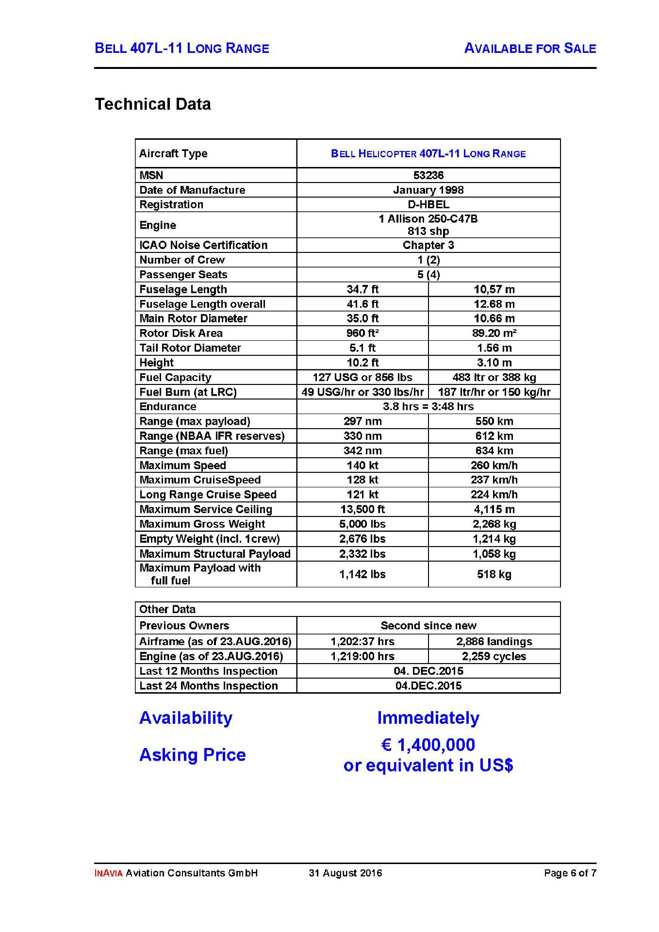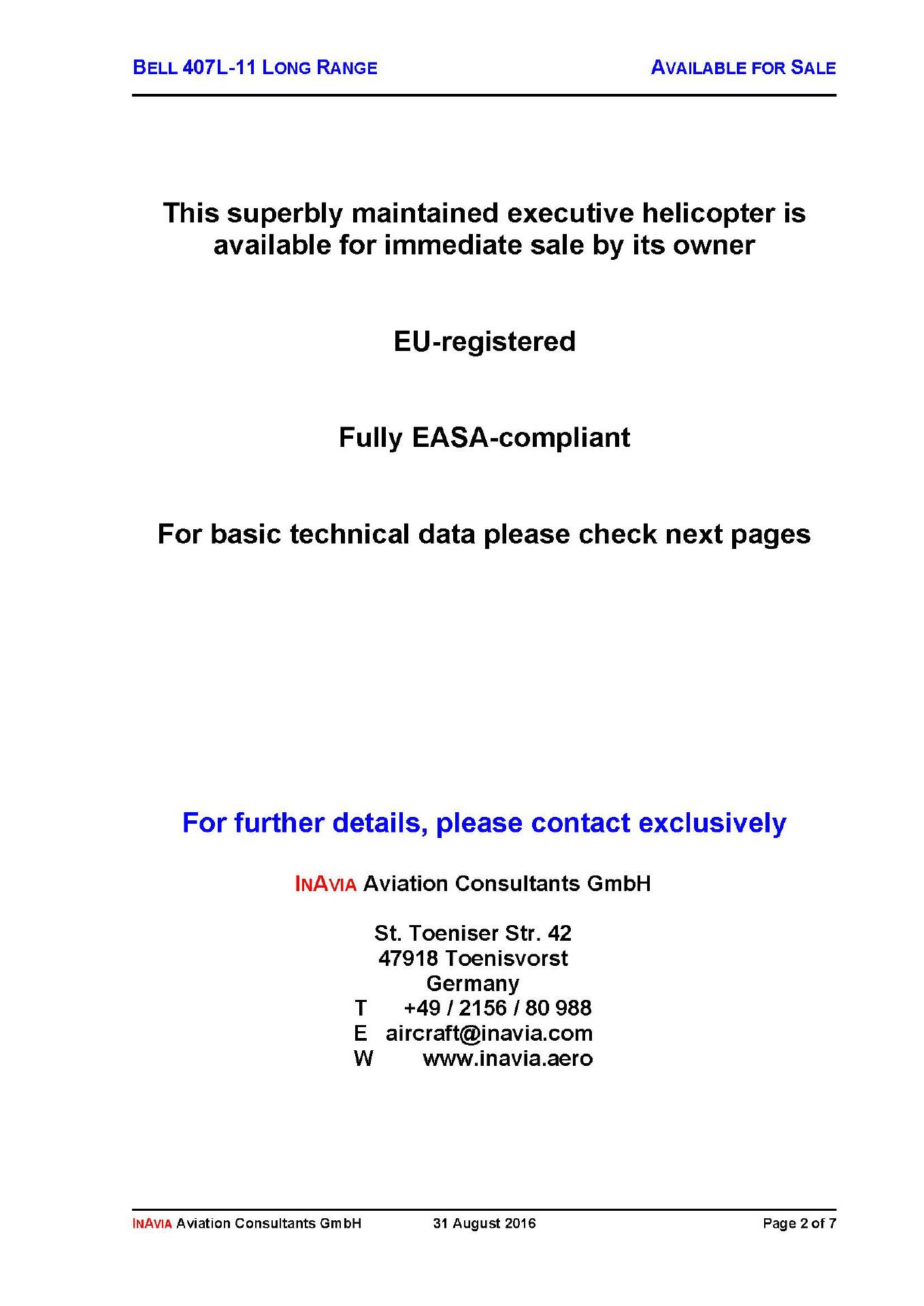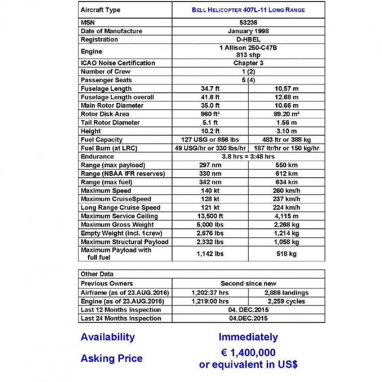 You are here: InAvia Aviation Consultants GmbH » For Sale / For Lease » Aircraft / Helicopter » Bell 407L-11 Long Ranger